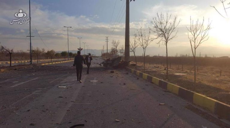 The site of the attack, which targeted the leadering Iranian nuclear scientist Mohsen Fakhrizadeh in Absard city, north of the Iranian capital, Tehran, November 27, 2020. Photo: Video grab from FARS news agency via Press TV